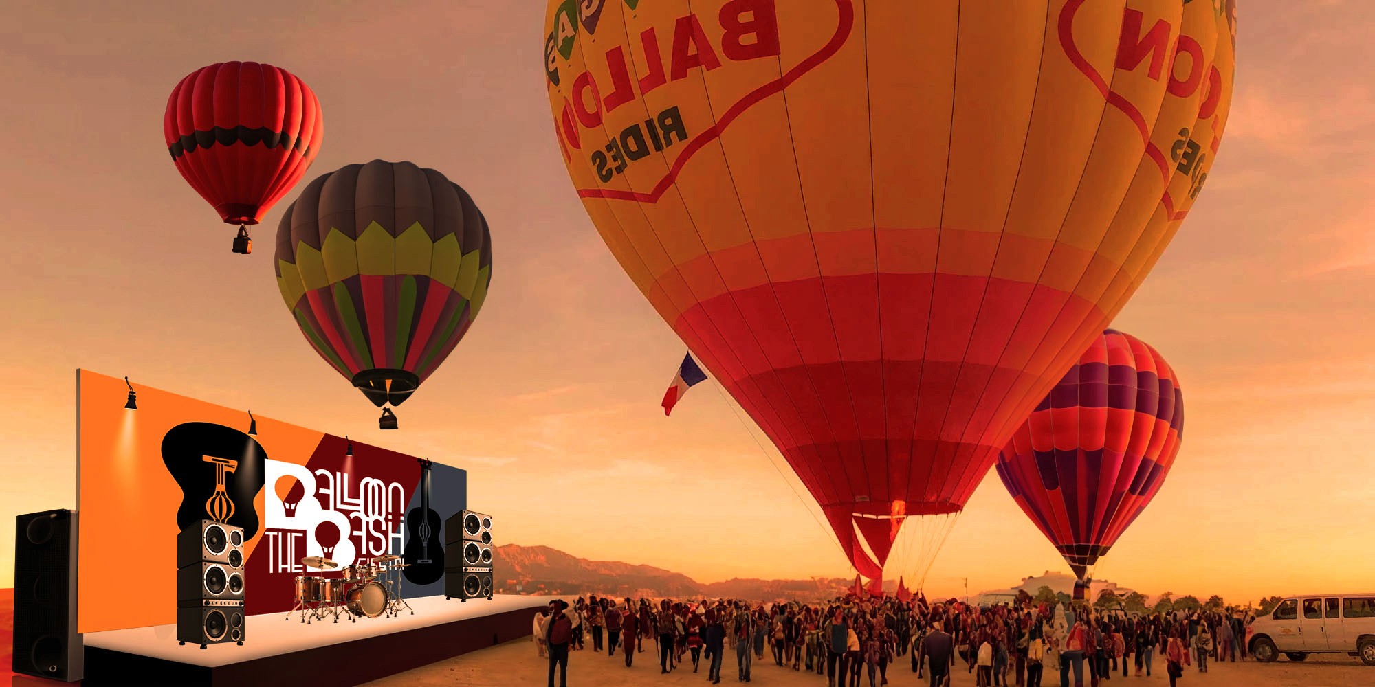 The Balloon Bash Fiesta is a concert concept inspired by the annual Albuquerque, New Mexico, International Hot Air Balloon Festival. The festival is the largest hot air balloon sporting event in the world, held to date. In fact, balloons launch from a 78-acre lot, which, to compare, is approximately the size of 54 football fields.